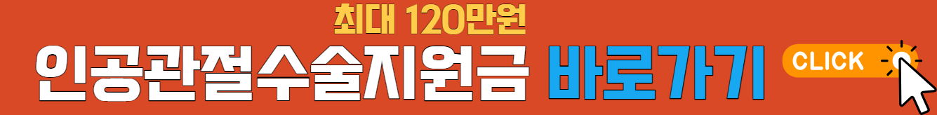 무릎 통증으로 수술치료를 고려 중이시라면 아래 클릭하셔서 인공관절수술 지원금 받을수 있는 조건이 되는지 확인해 보세요.